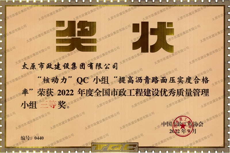 資質(zhì)證書 營業(yè)執(zhí)照 2022年度市政工程最高質(zhì)量水平評價_H5-1路道路及配套工程(二標段) 2022年度工程建設(shè)誠信典型企業(yè) 中國施工企業(yè)管理協(xié)會_AAA級企業(yè)信用等級 2022年度全國市政工程建設(shè)優(yōu)秀質(zhì)量管理小組三等獎_''核動力QC小組”提高瀝青路面壓實度合格率”